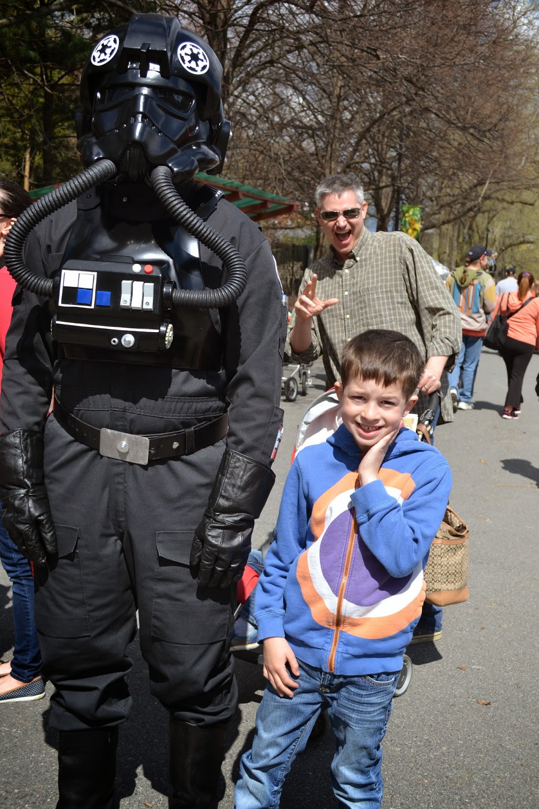 The weather finally took a turn towards Spring, so we headed out to enjoy the sun with a trip to the Franklin Park Zoo. Unbeknownst to us, it was STAR WARS DAY!!!! (Ironically, I had been telling Henry in the car how today was the anniversary of Star Wars, but we had no idea that zoo was doing anything for it). Henry was beyond excited to discover many costumed characters wandering the zoo today: